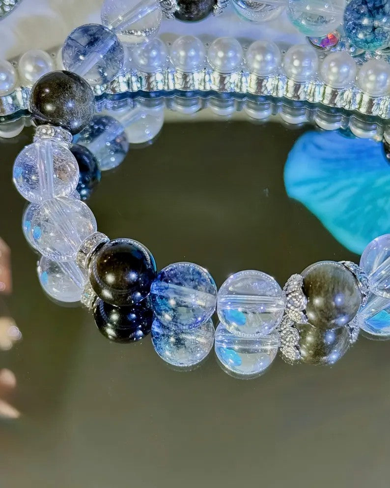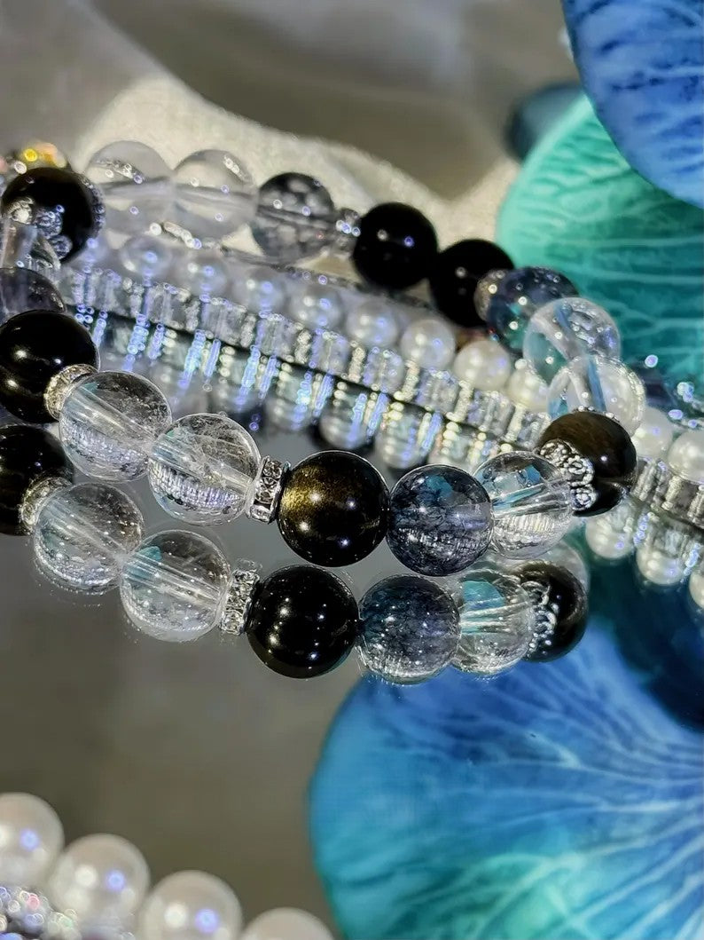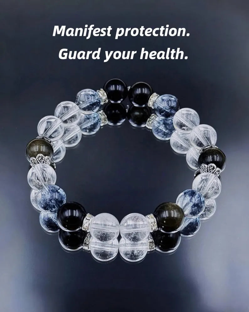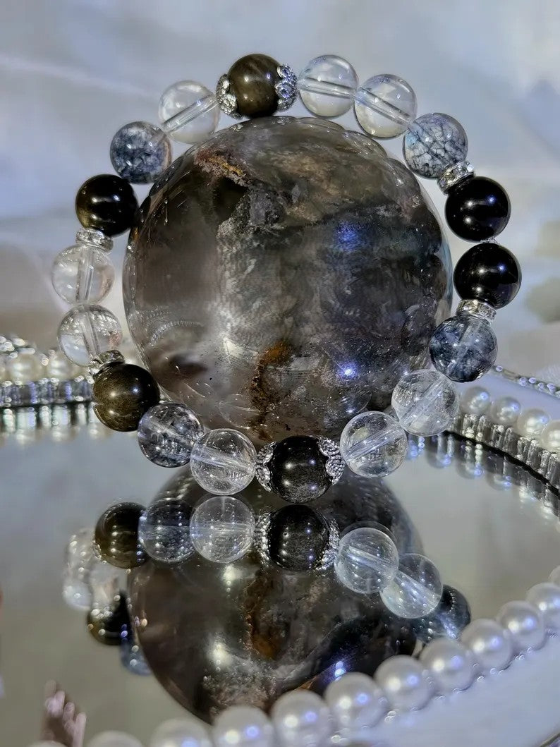 Schutzarmband mit Bergkristall, Obsidian & Black Flash